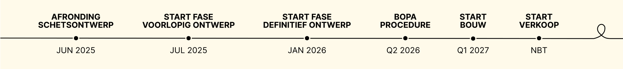 Deze planning geeft een overzicht van de belangrijkste stappen in het ontwerpproces en de ontwikkeling van het plan. De genoemde momenten zijn indicatief en kunnen gedurende het proces wijzigen.