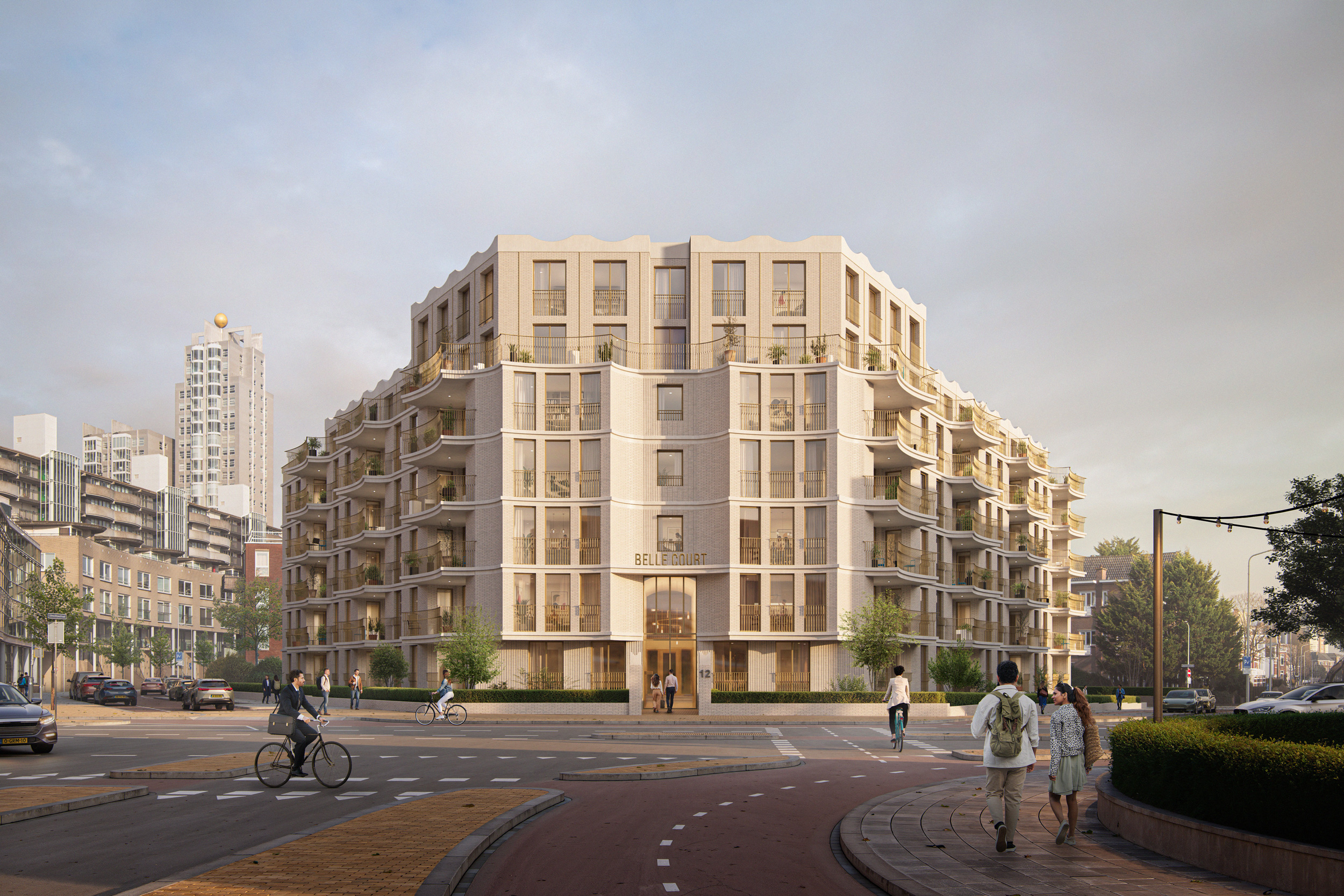Belle Court brengt de grandeur van Scheveningen terug naar vandaag. Aan de Badhuisweg verrijst een stijlvol woongebouw dat een subtiele knipoog maakt naar de badhuisarchitectuur uit de jaren ’20. Hier woon je tussen stad en zee, op een plek waar elegantie en rust elkaar ontmoeten. De architectuur ademt karakter, met verfijnde details en een serene binnentuin als groene schakel tussen binnen en buiten. Voor wie houdt van stijl, comfort en verbondenheid met de buurt. Geen massa, maar een intieme gemeenschap met klasse en verhaal. Live where the city meets the sea.
